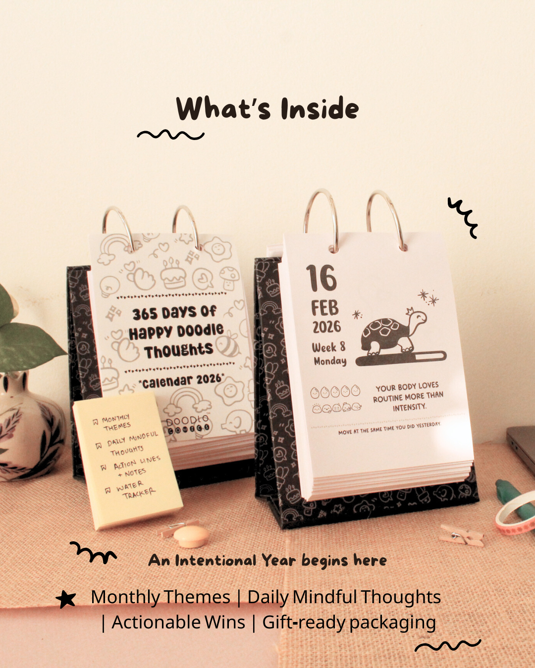 A desk calendar is more than just a date tracker, it's your daily productivity companion. At Doodle Comics, we create vibrant, thoughtfully desk calendars that bring creativity and organization to your workspace. Buy colored or black & white Doodle Table Calendar with motivational quotes to make your day filled with positivity.